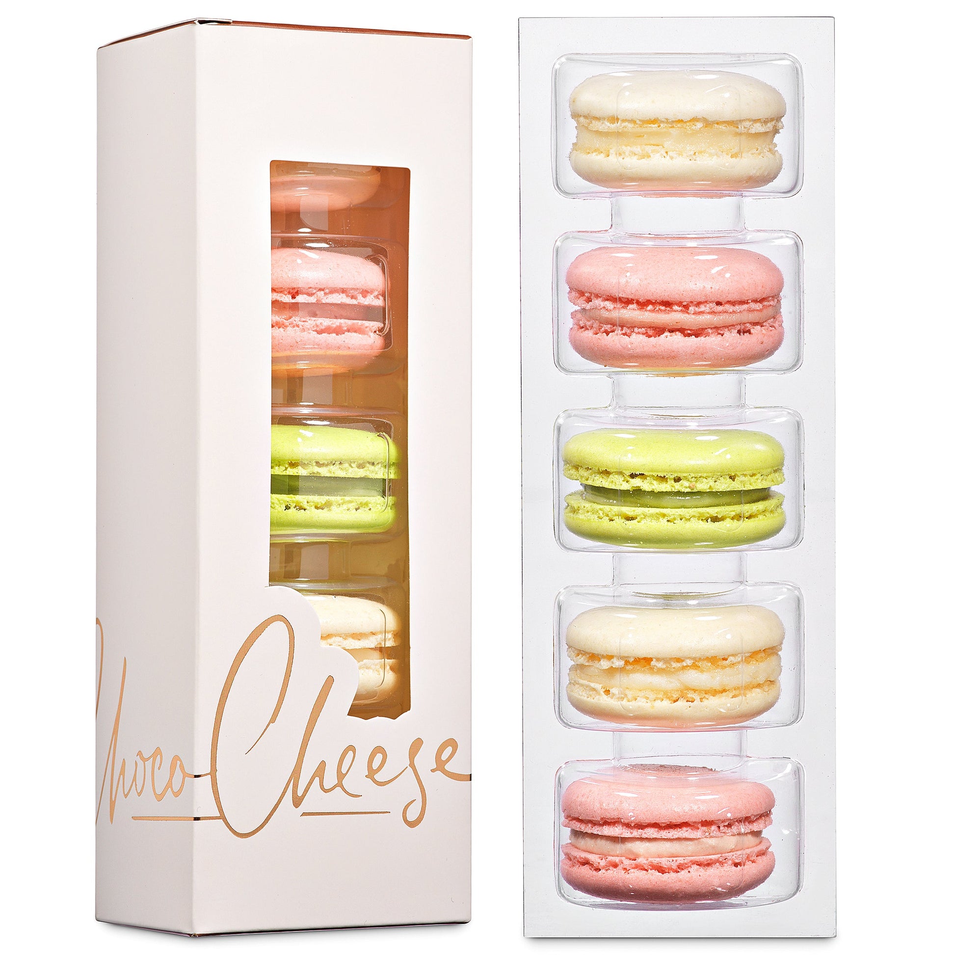 Heavenly, soft, cheese filled macarons with variety of strawberry, pistachio and vanilla flavors.
