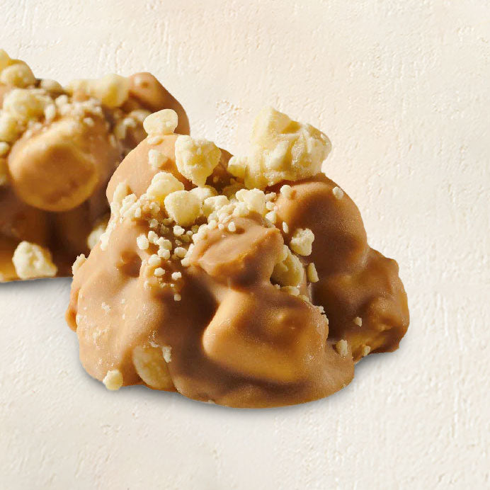 Homemade, clustery chocolates made with marshmallows, cookies, crisps and pretzel chops topped with chocolate chunks.